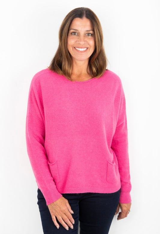 Amazing Woman Jodie Front Pocket Supersoft Knit Jumper In Magenta
