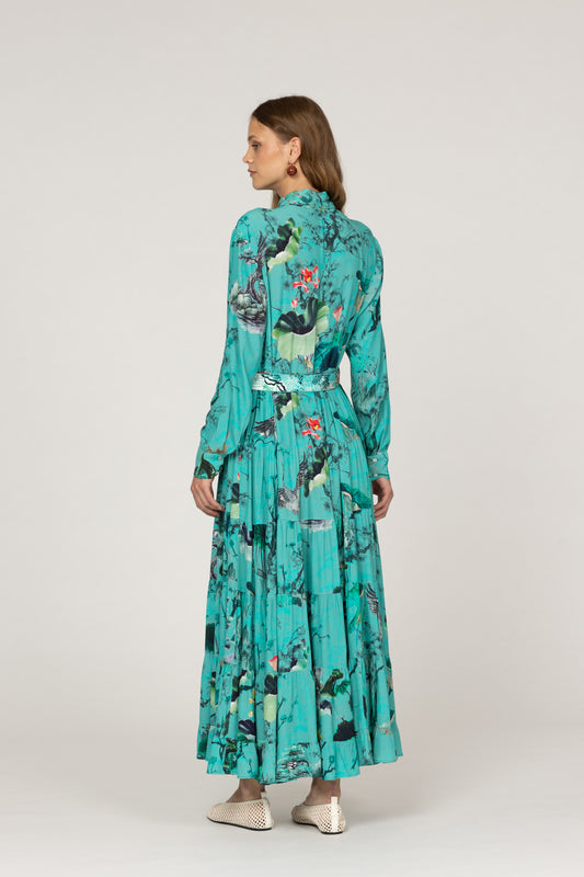 Inoa Jardin Magnifique Dress In Green - 100% Premium Silk