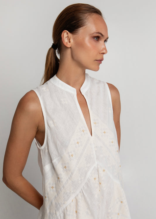 Greek Archaic Kori Embroidered Sleeveless Dress