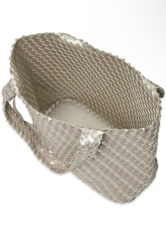 Ilse Jacobsen Two Tone Reversible Woven Bag Atmosphere Platin