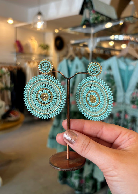 Aqua Blue & Gold Beaded Circle Earrings