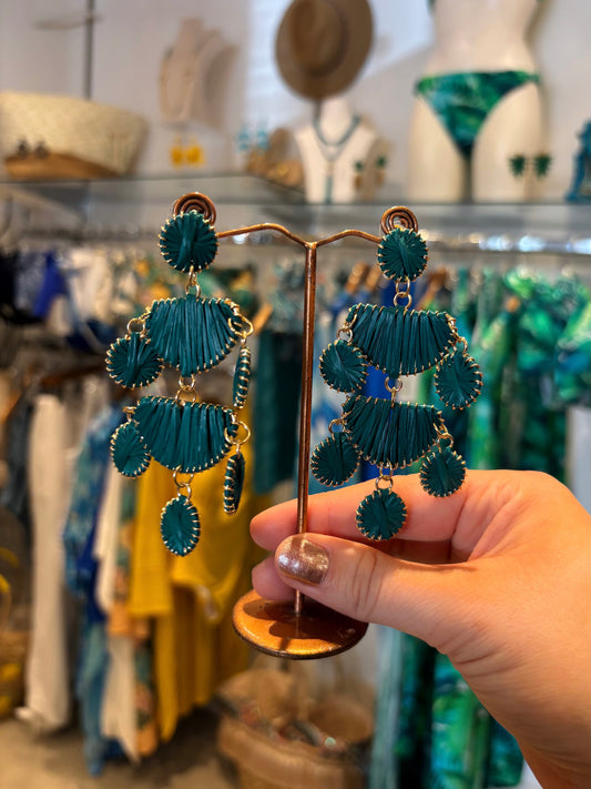 Teal Raffia Chandelier Earrings