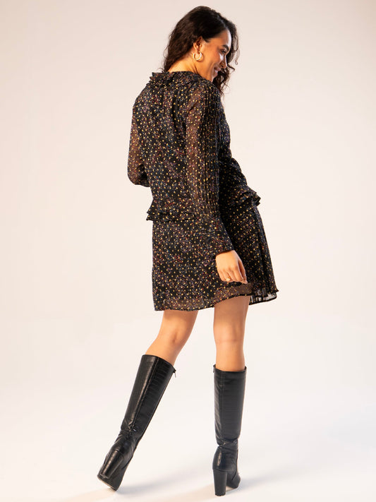 Rose And Nancy Tara Black Star Print Metallic Polka Dot Mini DressRegular price £105.99 GBPRegular priceUnit price / per-