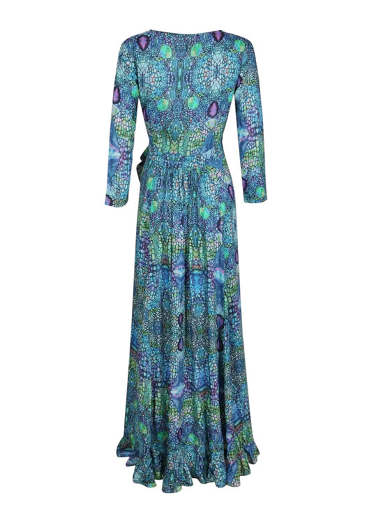 Sophia Alexia Blue Iguana Ruffle Wrap Dress