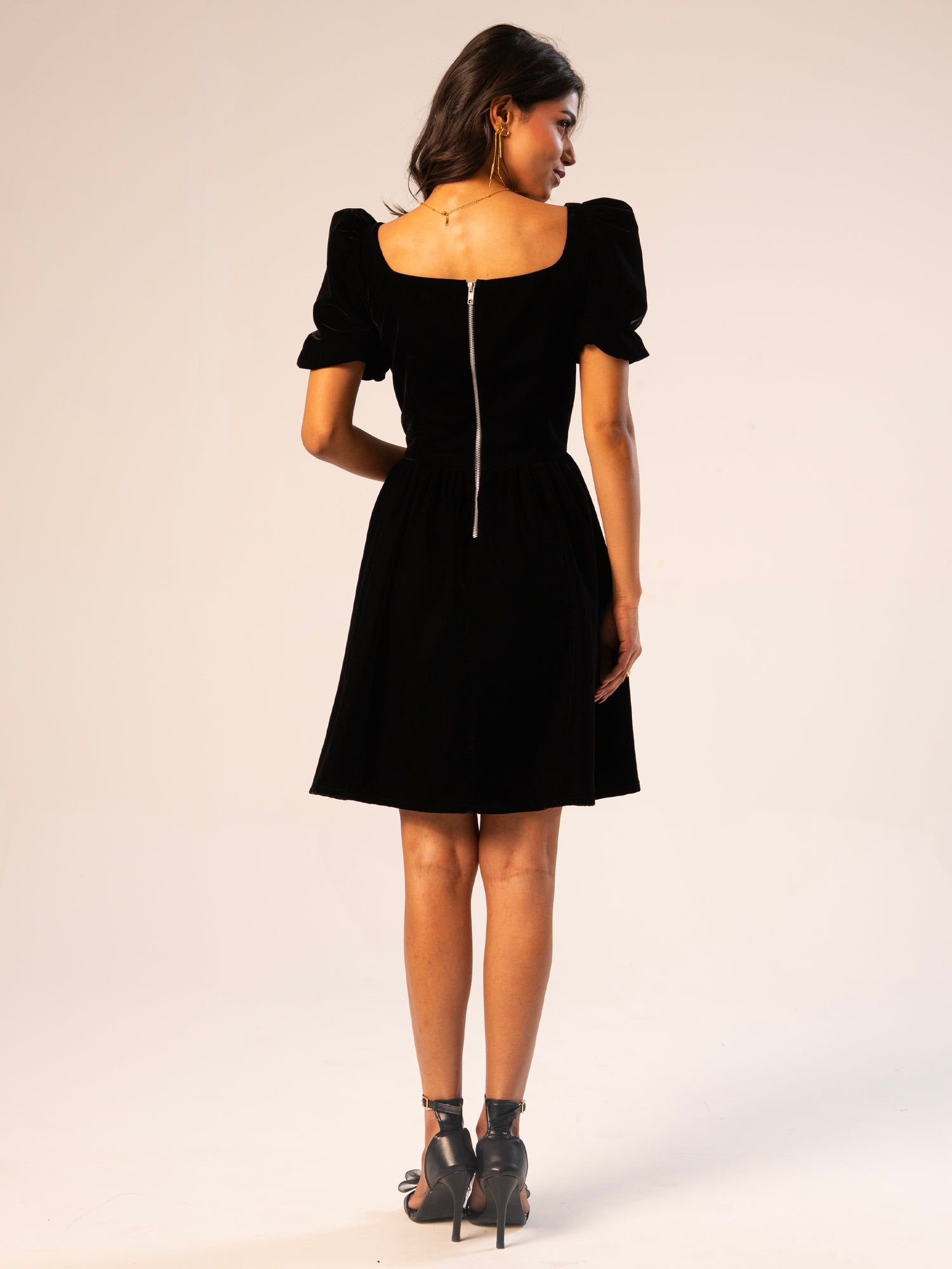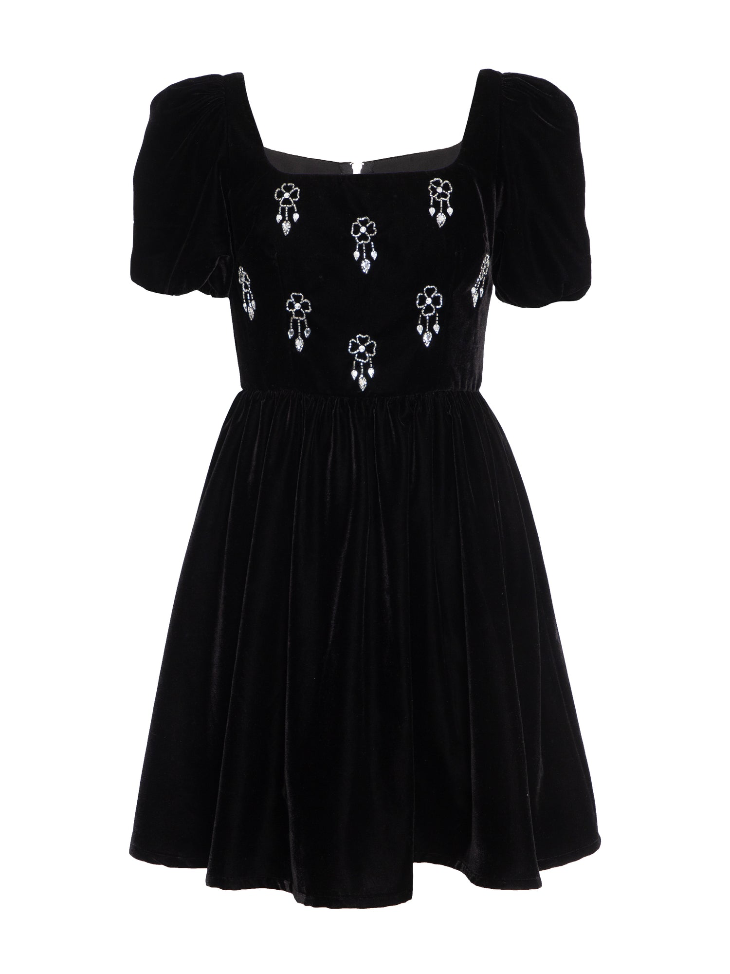 Rose And Nancy Embellished Square Neck Velvet Mini Dress
